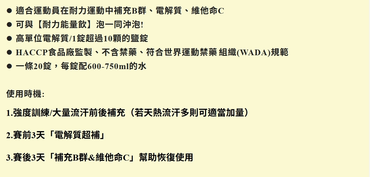 適合運動員在耐力運動中補充B群、電解質、維他命C