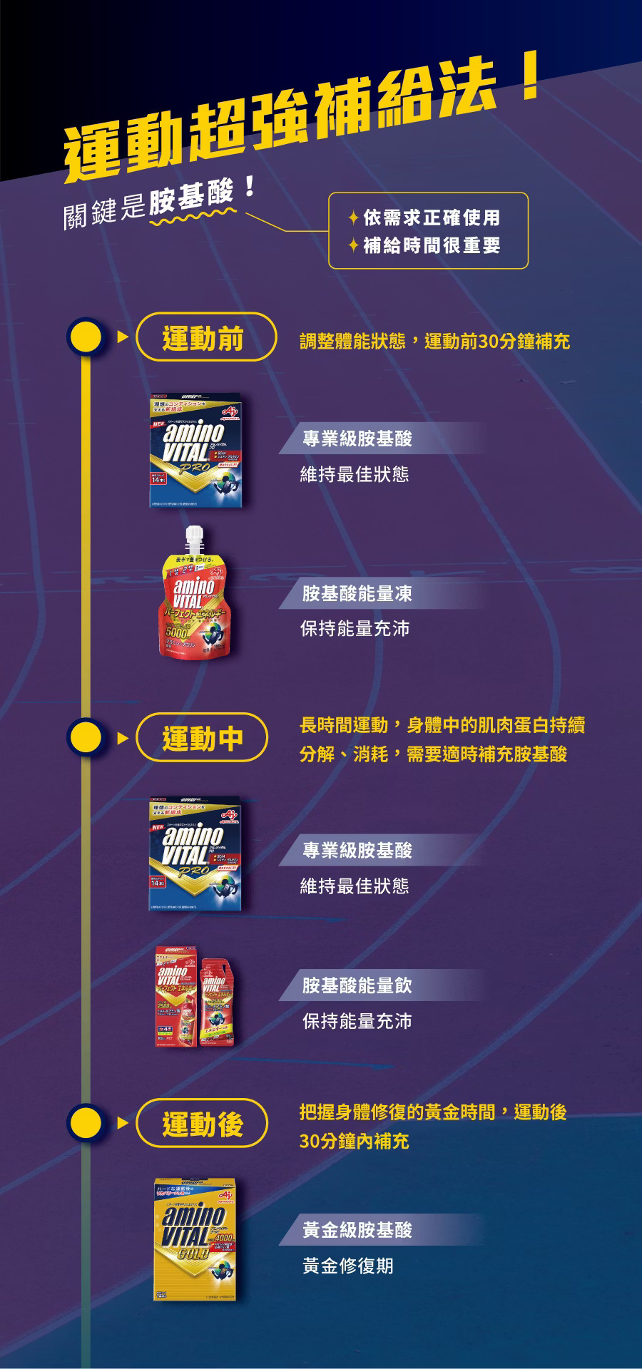 日本味之素以獨特胺基酸成分(丙胺酸+脯胺酸)搭配碳水化合物研發而成,有效補充身體需要的能量!