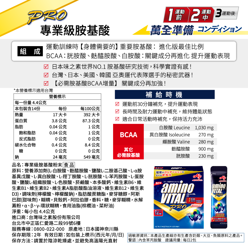 日本aminoVITAL® PRO 專業級胺基酸(4.4g/包)