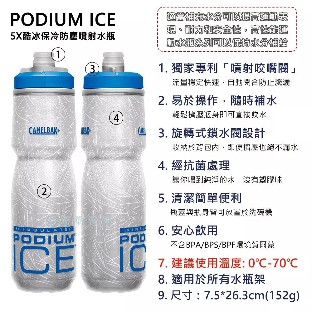Camelbak Podium ICE 5X酷冰保冷噴射水壺 620ML 三色可選