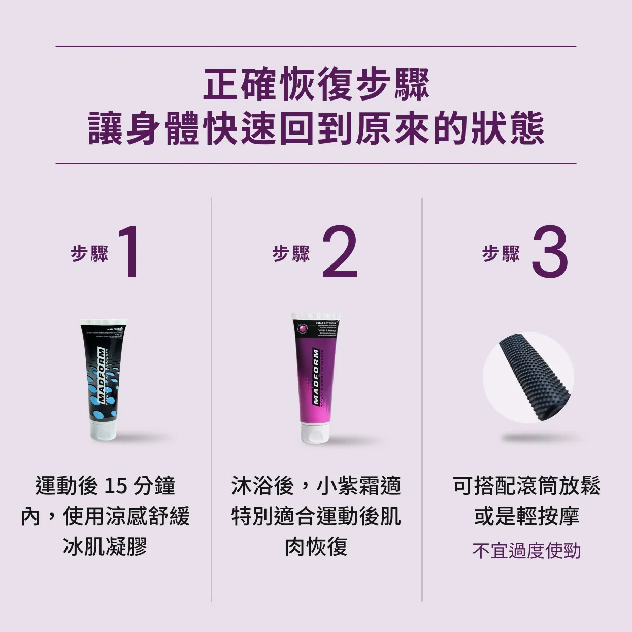 ♥運動後先使用舒緩冰肌凝膠冷卻,再使用肌肉深層修護霜恢復肌肉