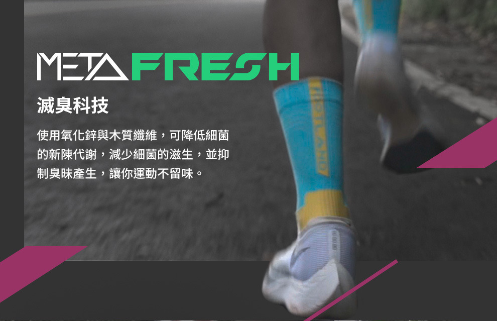 A: 除臭對於機能運動襪來說是最基礎的,FOOTLAND針對不同汗量採用兩種抗菌除臭材質,分別為『FACC奈那白炭除臭纖維』與『FOOTLOND Z 氧化鋅除臭纖維』,兩者皆為長效型除臭紗線,安全無毒不傷害肌膚,能有效地吸收各種浮游物質,對硫化物、氯化物、鉀醇、苯、酚等有害化學物質能發揮到吸收、分解異味和消臭的作用。