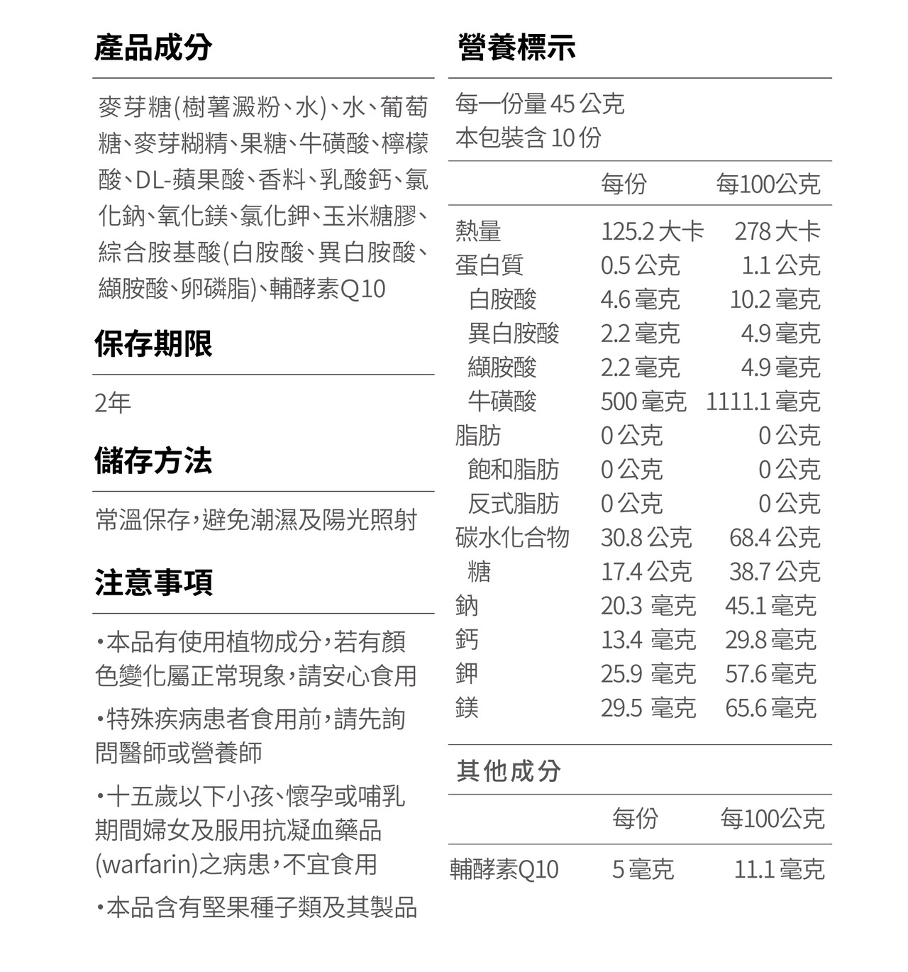 ・添加牛磺酸、BCAA及輔酶Q10:幫助增強體力耐力,提升整體運動表現。