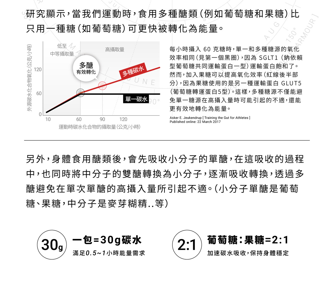 ・五大複合型碳水:易消化,吸收效率更佳,進而提供穩定持久的能量供應。