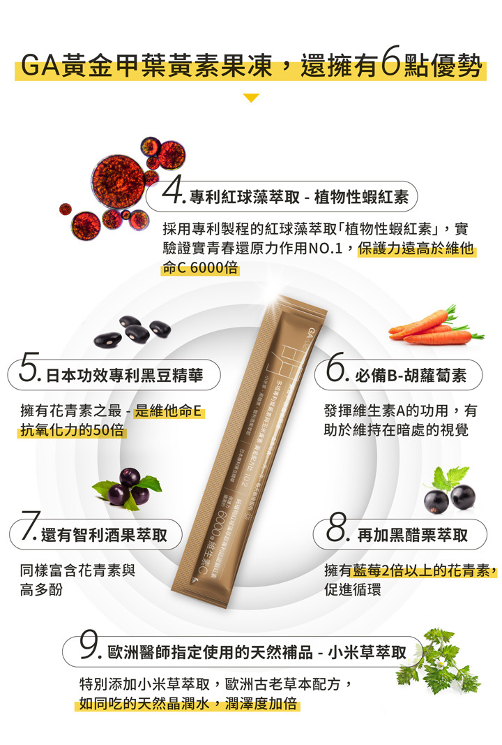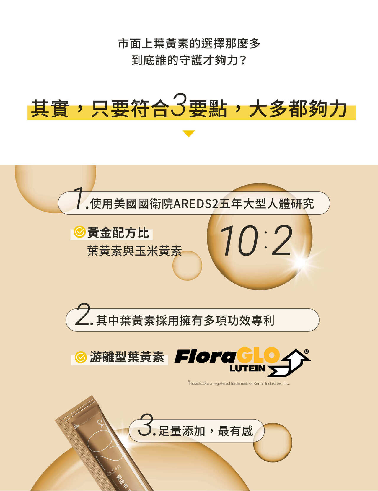 ・黃金10:2配方比的葉黃素與玉米黃素 + 植物性蝦紅素 + 天然晶潤水-小米草萃取