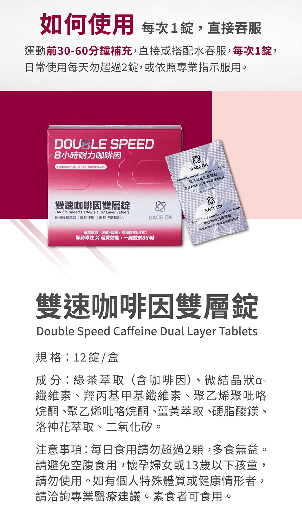 RACE ON 雙速咖啡因雙層錠(12錠/盒)