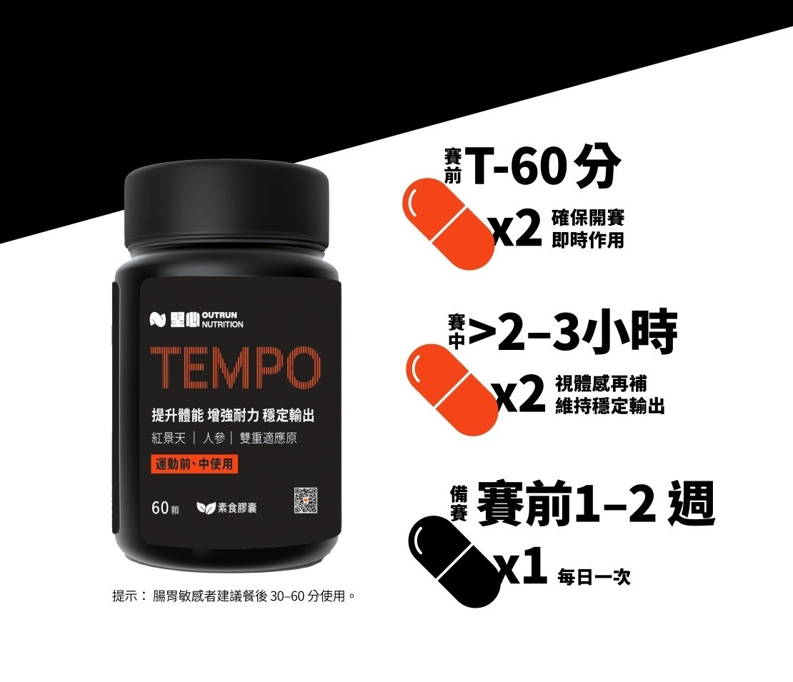 ⏱️賽前 / 賽中皆可使用|小顆膠囊,好攜帶無負擔,路跑、越野、鐵人都適用