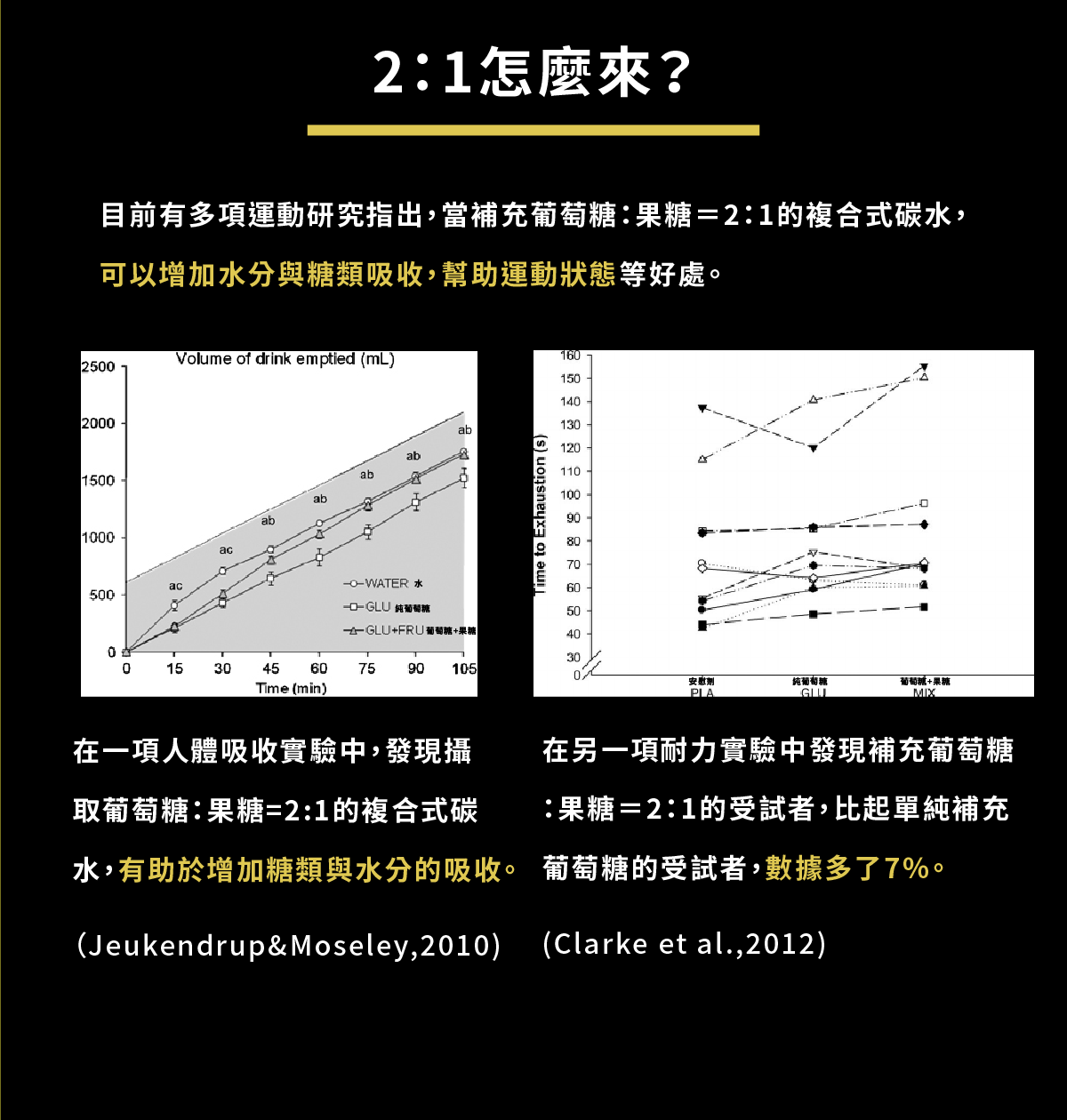 1. 使用葡萄糖:果糖=2:1複合碳水配方,經科學文獻證實可幫助吸收,降低負擔
