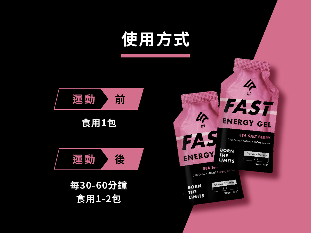 ▲使用方式:開封即食,運動前或運動中每30分鐘補充一包
