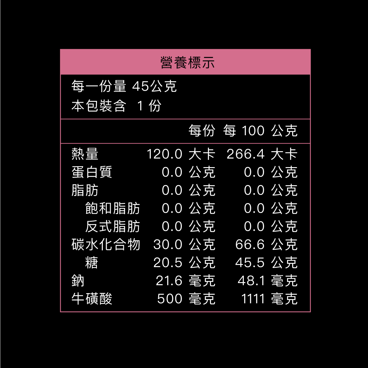 ▲過敏原:本產品含有500毫克牛磺酸,過敏者應避免食用