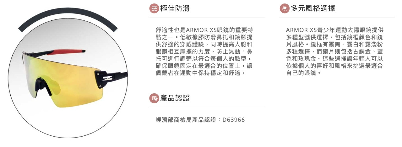 規格:ARMOR XS 青少年系列 - 181 霧白框+抗UV400、防油污、防撞 PC灰片電藍多層鍍膜